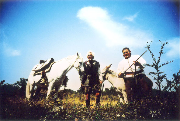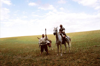 Todo indica que la abundancia de medios económicos, materiales y personales no garantizan nada. Al menos para poco sirvieron los 32 millones de dólares con los que contaba Terry Gilliam, para filmar «El hombre que mató a Don Quijote», aunque justo es indicar que los elementos se aliaron contra el director inglés, en esta ocasión en forma de ruido atronador de los aviones sobrevolando el cielo en pleno rodaje y de diluvio universal cayendo sobre las Bárdenas (Navarra), y al mismo tiempo que los afectados contemplaban impotentes como los decorados y equipos caían destrozados, una hernia discal llevaba al hospital a Jean Rochefort, el actor que encarnaba a Alonso Quijano, por cabalgar a un indomable Rocinante. De tales desventuras la película de uno de los miembros de los míticos Monty Python devino inconexo documental, «Lost in La Mancha» (2002). Sin necesidad de ser supersticiosos, algo maldito parece perseguir a este proyecto, ya que antes del realizador inglés, Orson Welles (1915-1985) filmó su trabajo sobre el Quijote a lo largo de varias décadas (1957-1970) pero no pudo concluirlo, y sólo después de su muerte aparecieron distintas versiones, todas ellas parciales y extraoficiales, siendo «Don Quijote» (1992), de Jesús Franco, la más conocida de este legendario cinematográfico. El tema tampoco es lo que dice una perita en dulce, si no que se lo cuenten a Ary Fernades, por las agrias críticas que recibió su «As trapalhadas de Dom Quixote e Sancho Pança» (1977), así como a Rafael Corkidi, por «Mi señor Don Quijote» (1982).